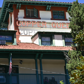 After the 1 hour tour we returned our fashionable outfit and drove into 'Old Bisbee'. A little bigger and more charming than Tombstone, but just as fake. The main building is the Queen Copper hotel and further down the street you can find a ton of antique shops and some cafe's.