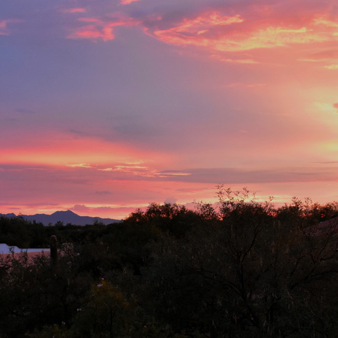 Rain finally gives this area cooler air, open doors and windows in the evening, lush green trees and purple flowers everywhere. The rain is always sudden, short and intense, accompanied by loud thunder and intense lightning. It creates beautiful sunsets and gorgeous clouds. Photographers no doubt flock to Tucson these days for the best sky's of the country. Storm chasers as well must feel in paradise.