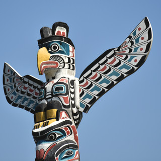 The sun was out once again the last day in the city, so it was back to the bike. The Seawall doesn't stop at Stanley Park but follows the coast further South for another 10 kilometers (sore behind, here we go!). When coming from downtown, it first gets interrupted though by an island. Granville Island is only reachable by little ferry boats that take you across for a couple of dollars. Granville has a very alternative vibe, with a farmer's market, local art galleries, a brewery and a couple of restaurants. After buying our local, healthy lunch at the market we biked further on our way to the Anthropology Museum, stopping along the way at Kitsilano Beach. The museum focusses on totem poles, carved by modern artists with a native heritage. Besides the totems, the museum has an exhibit about indigenous people of South America and Asia. I mean, makes sense.